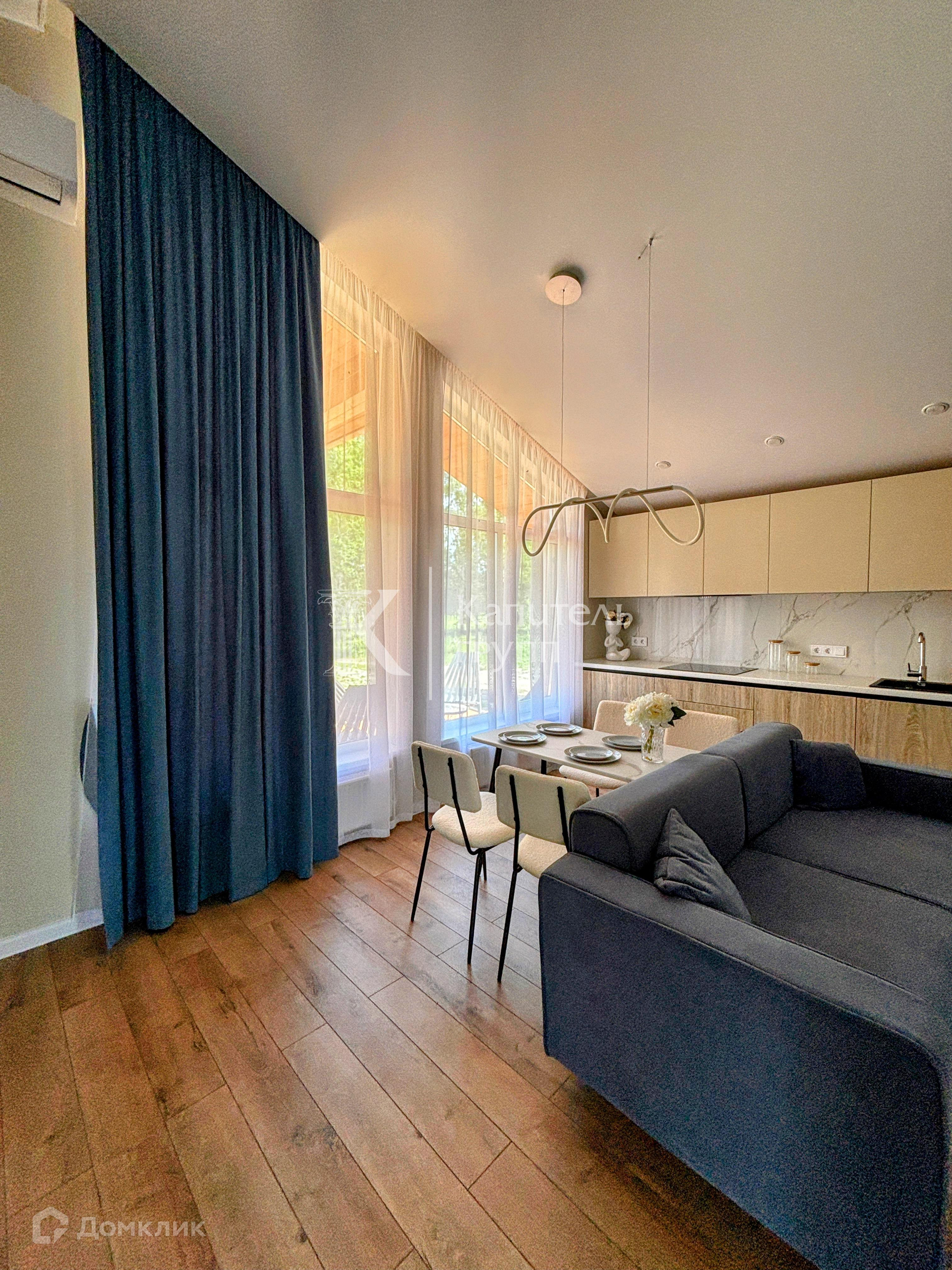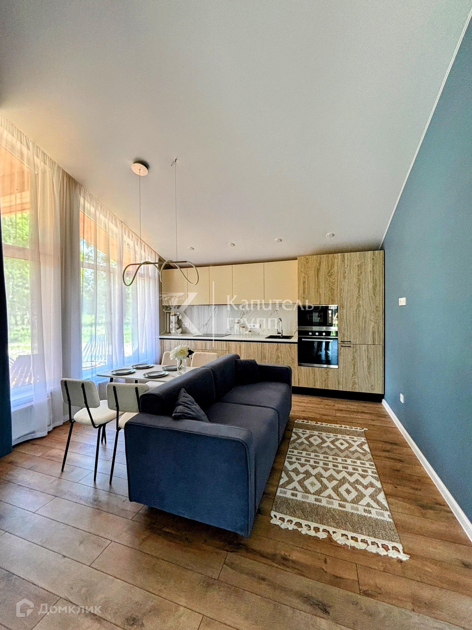 Кух.гарнитур, обеденная зона (стол, стулья), диван, шкаф купе, зеркало, консоль.