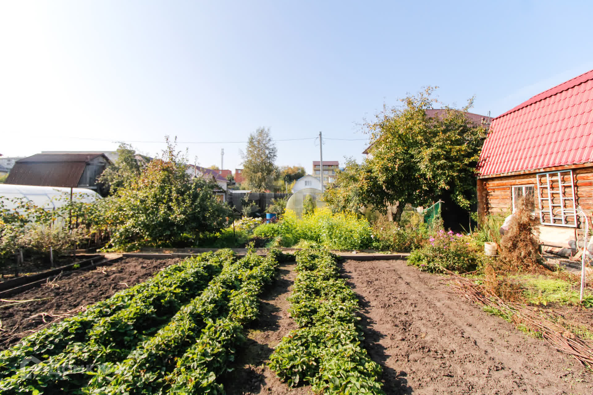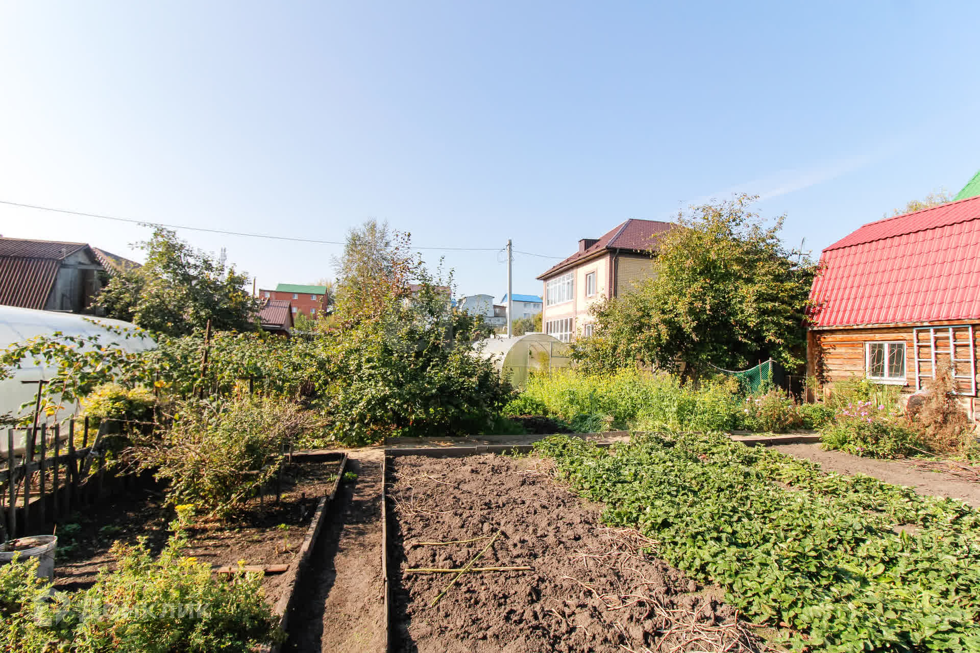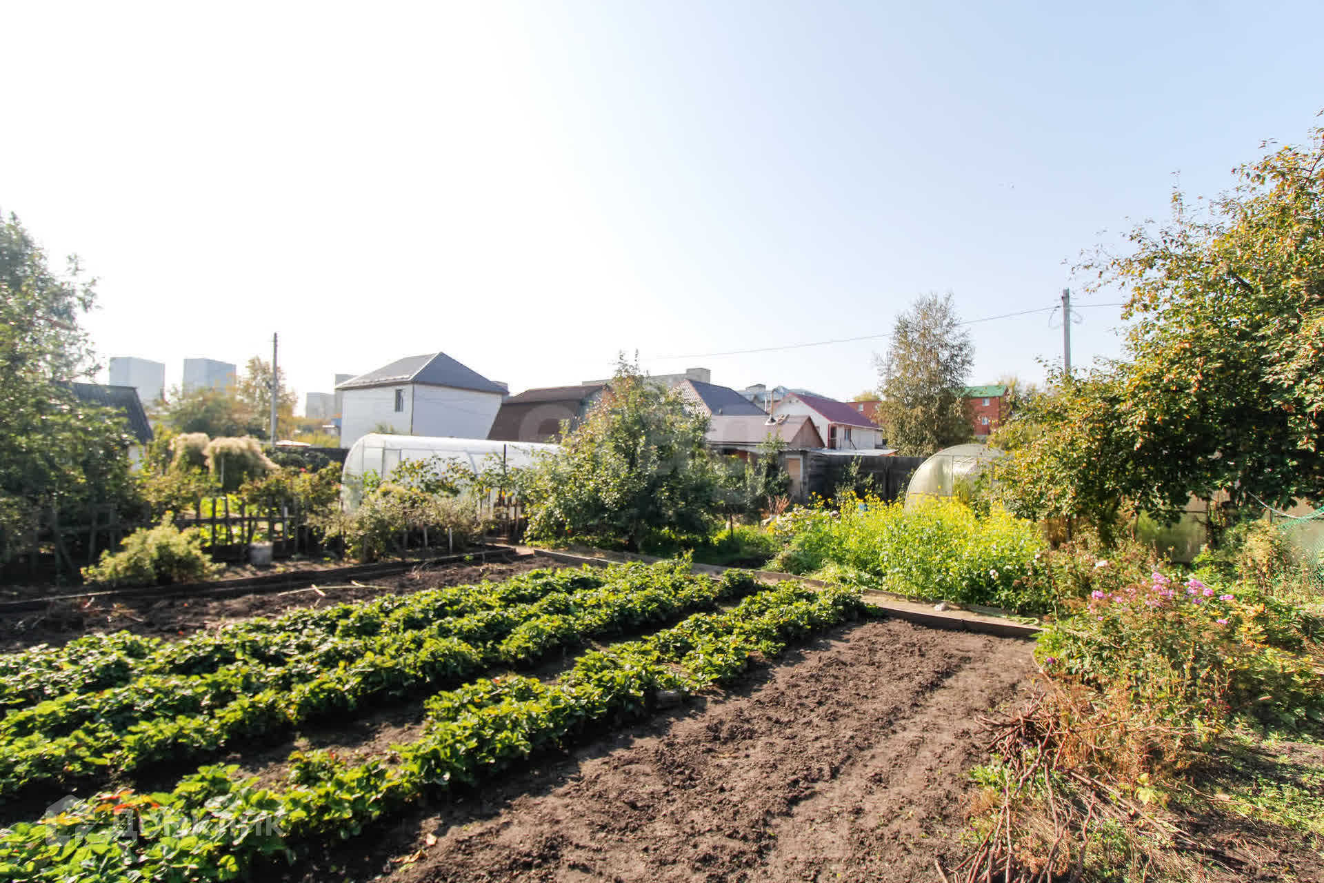 На участке две теплицы, которые подойдут для выращивания овощей и зелени, а также плодовые деревья: яблони и вишни, которые порадуют вас своим урожаем.