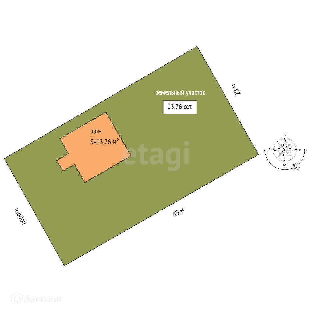 Площадь участка 13.76 сот.