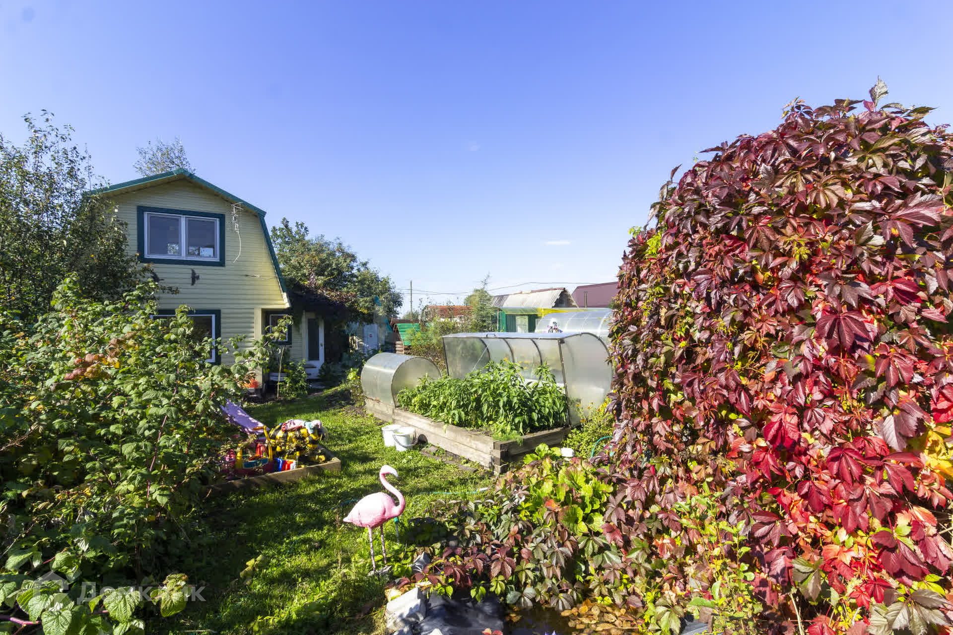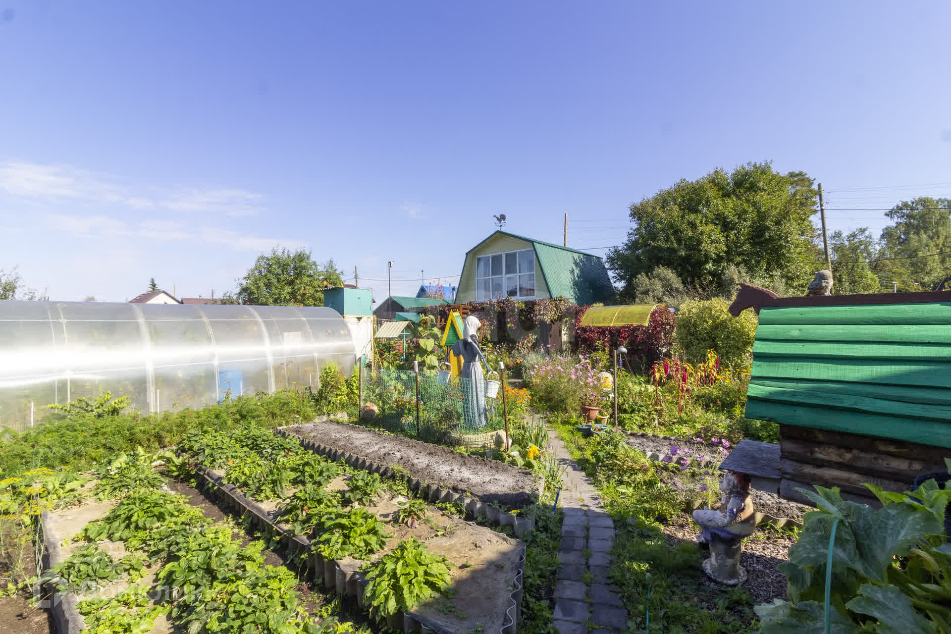ПОСТРОЙКИ: Дача полностью укомплектованная: есть баня 3х6, веранда 3х6, сарай для инвентаря, мастерская, кладовая с погребом, 3 просторные теплицы с автоматическим поливом из емкости. Участок отсыпан щебенкой(подготовлен к укладке плитки), грядки высокие из бруса. Оборудовано парковочное место. Угловой участок 7 соток, возможен въезд с двух сторон. Дача огорожена забором из профнастила. Есть насаждения: яблони, смородина, жимолость, крыжовник, малина, клубника.