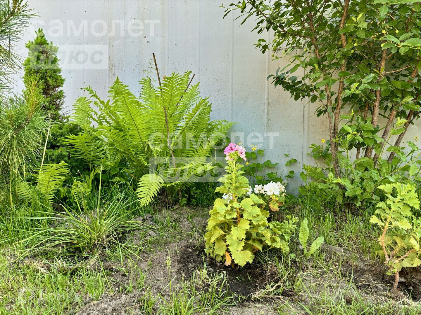 Вокруг дома растут различные плодовые и ягодные деревья и кустарники, такие как