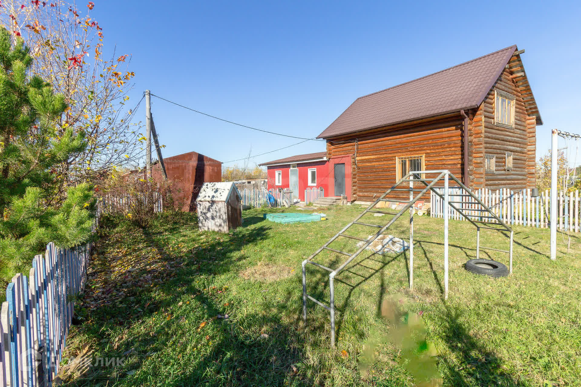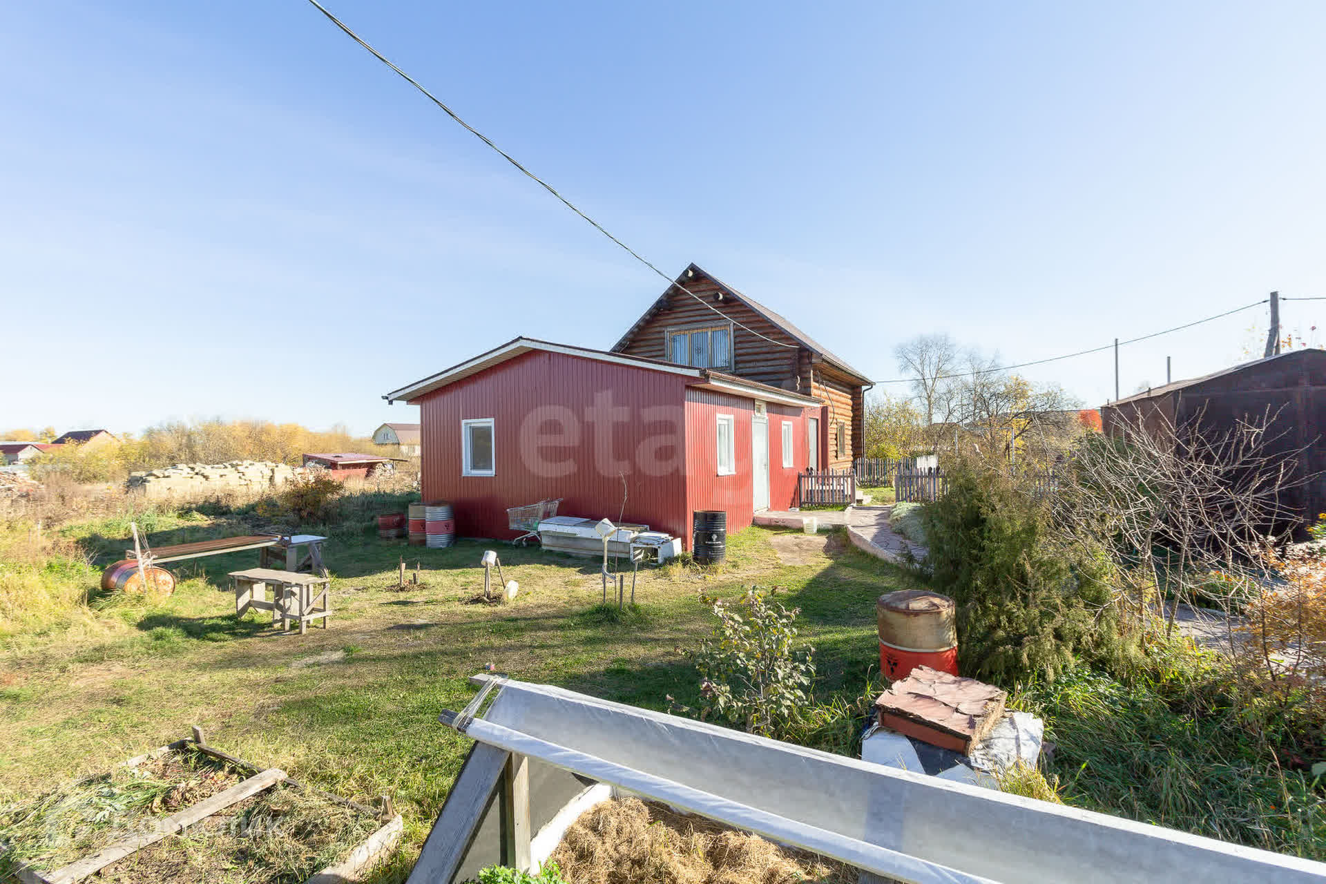 Участок 15 соток. Земля обработана. Растет более 15 плодовых деревьев (груша, яблоня, слива, черёмуха, рябина, вишня и т.д.), столько же кустарников (ревень, малина, смородина, жимолость, ежевика, крыжовник разных сортов). Также три ёлки и кедр! Много цветов многолетних.