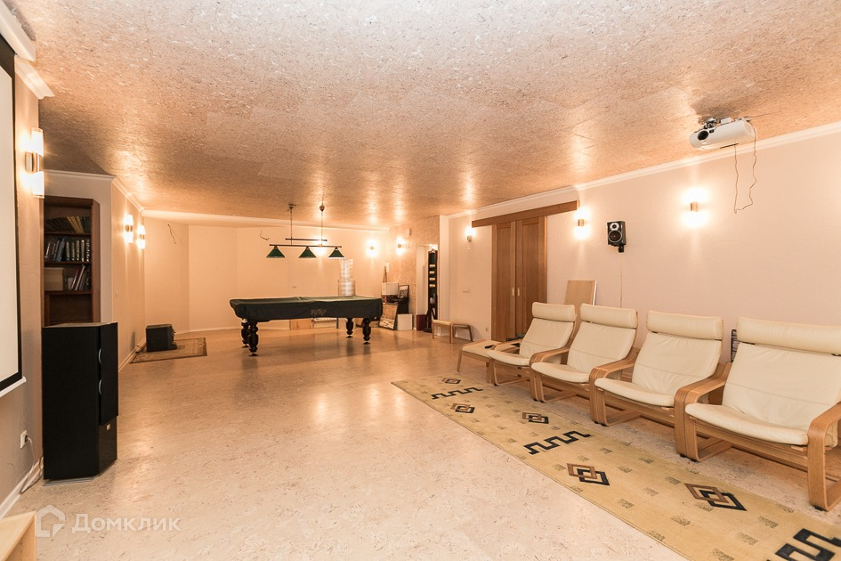 На цокольном этаже расположена котельная с электро-камином, кинотеатром и бильярдным столом