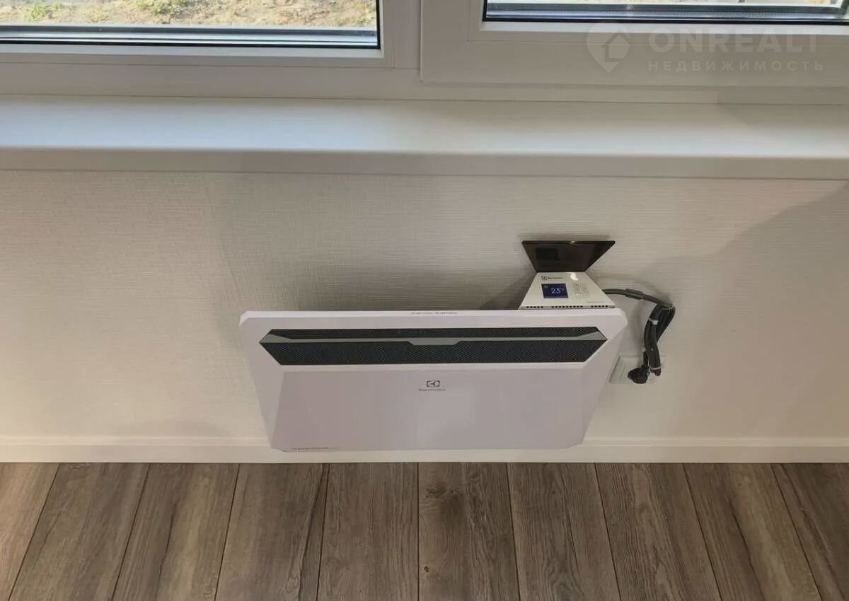 ?Отопление - обогреватели конвекционного типа Еlесtrоluх суммарной мощностью 5 кВт, ИК - обогреватель над дверью Ваllu 800 Вт в роле отсекателя , теплые полы на входе и в ванной (карбон в стяжке датчики в гофре) по 150Вт , установлена корзина под климатическую установку, сделана гильза под трассу.