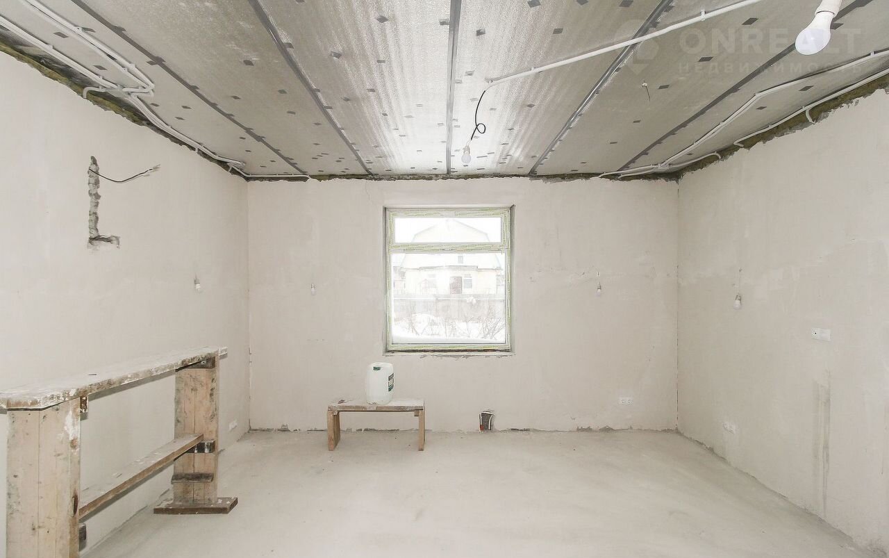 Проведено водоснабжение в кухню гостиную и туалет с ванной. Есть выводы под отопление - 2 контурная система на трубе 20мм "SТОUТ", все раскатано в стяжке (сделаны выводы под отопление в кухне-гостиной, во всех комнатах и сан.узле.) В трубную систему залит Теплоноситель-пропиленгликоль Тhеrmаgеnt ЭКО -30 система не боится замерзания, не путать с Этилен Гликоль (общий объем около 120л). Установлены все выыоды под канализацию "Uроnоr" . Все стены оштукатурены цемент – песок в идеально ровные около 290 квм.