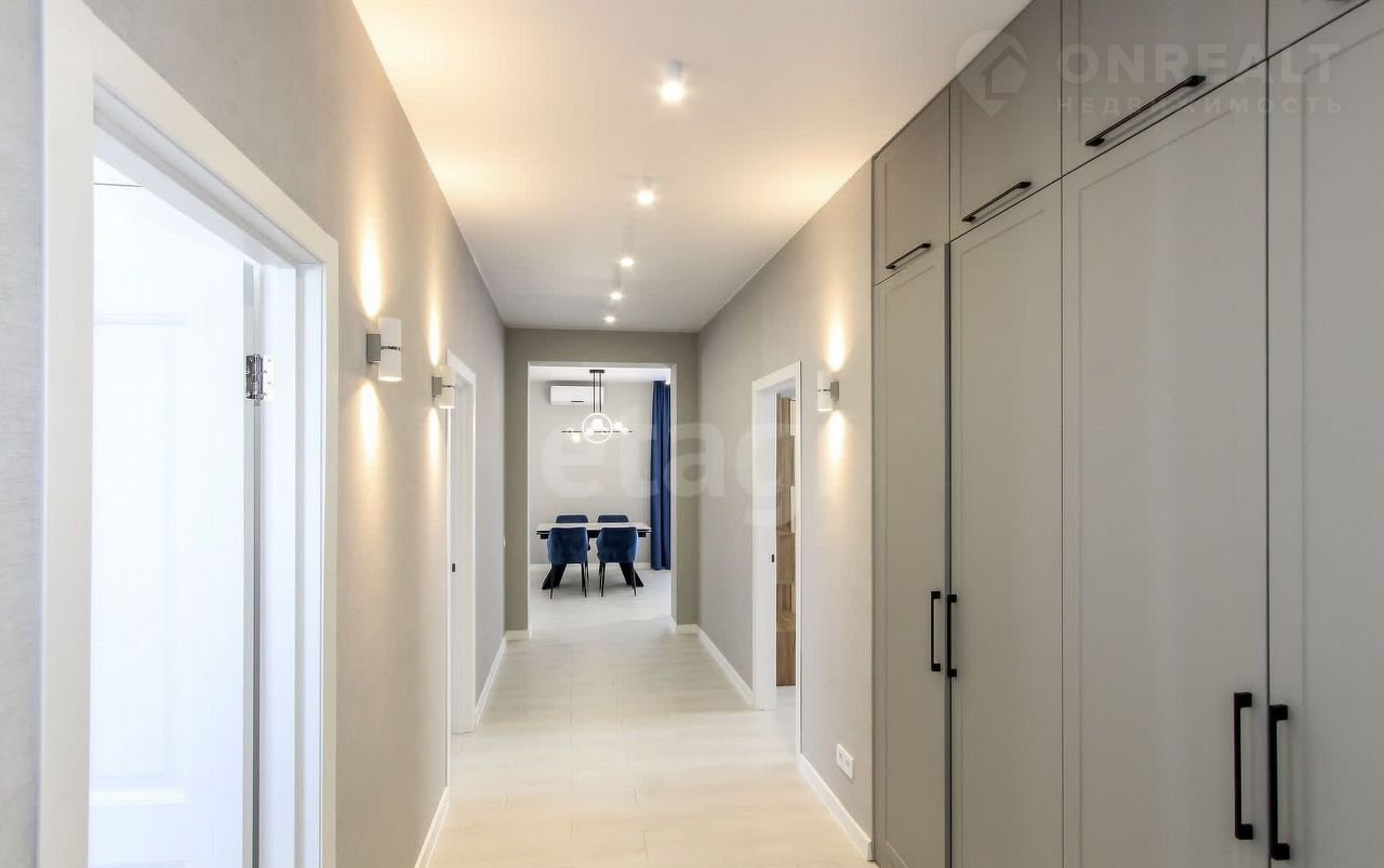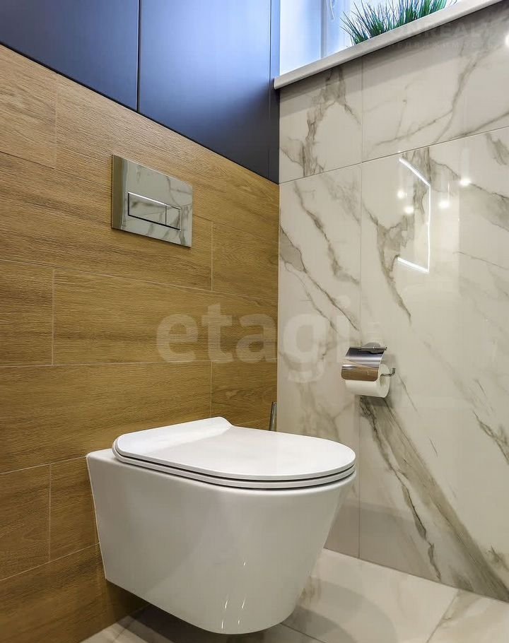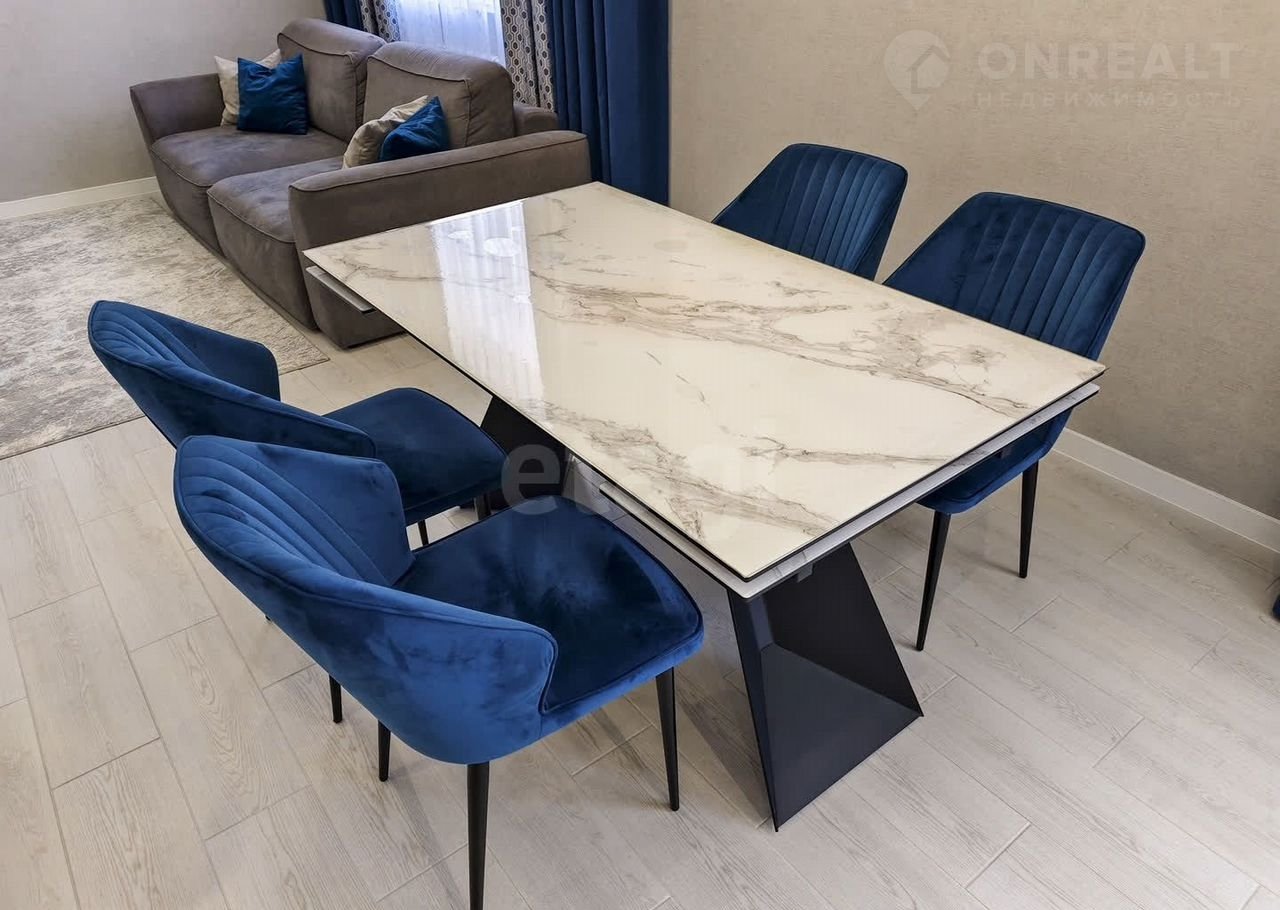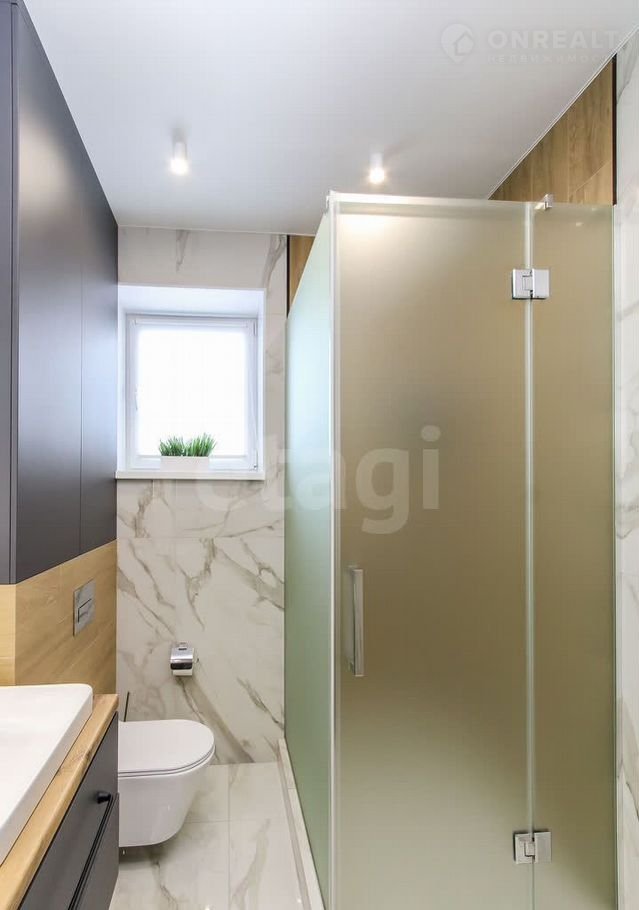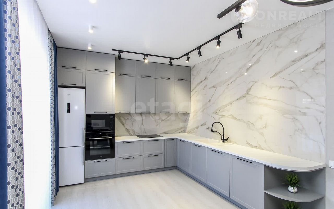 Санузел облицован плитами от "Кеrаmа Маrаzzi", душевая кабина выполнена по индивидуальным размерам. Стены оформлены виниловыми моющимися обоями, натяжные матовые потолки со стильными спотами и трековой системой освещения. Встроенная кухня и шкафы оснащены фурнитурой "Вlum". Вся мебель, встроенная техника и текстиль на окнах остаются новым владельцам.