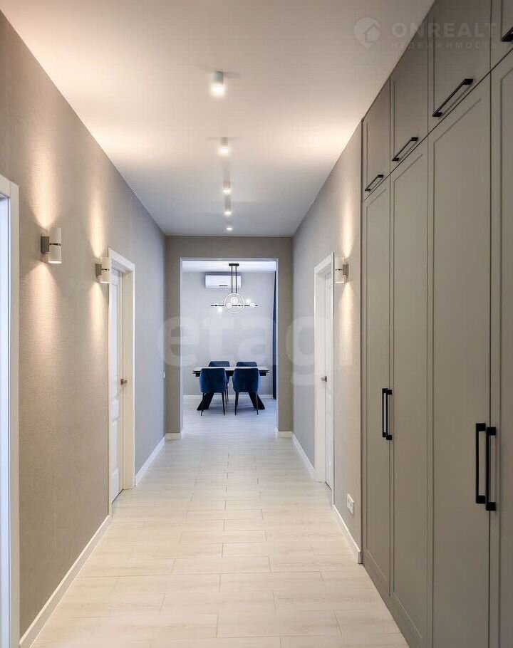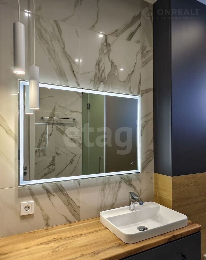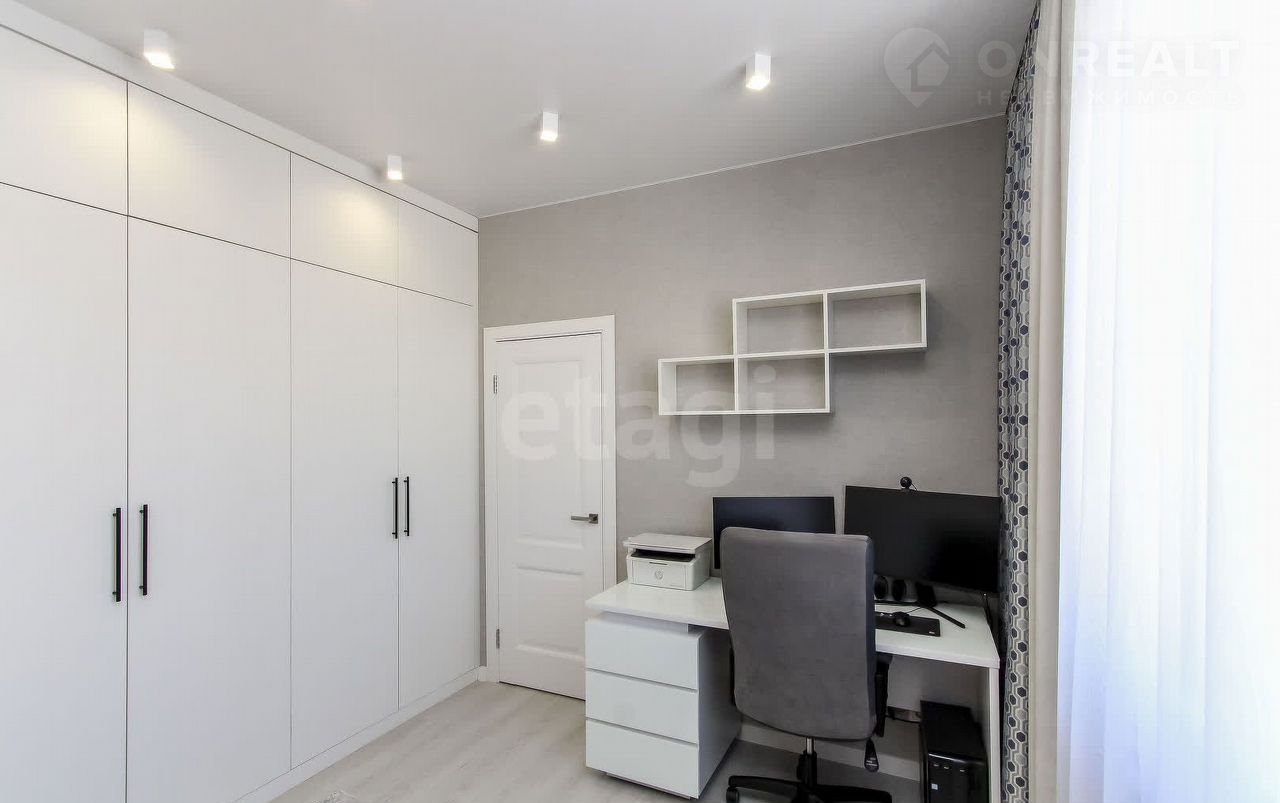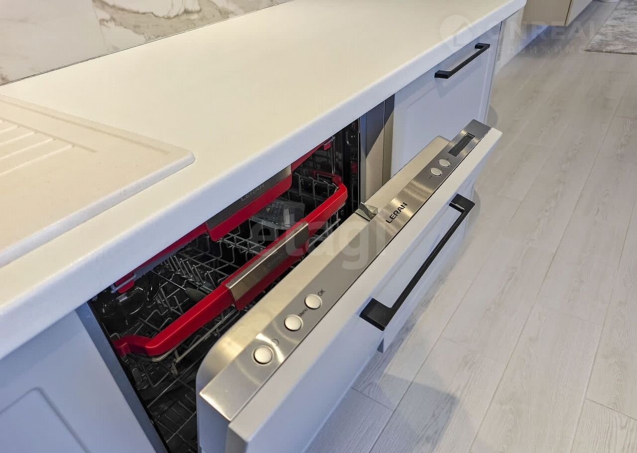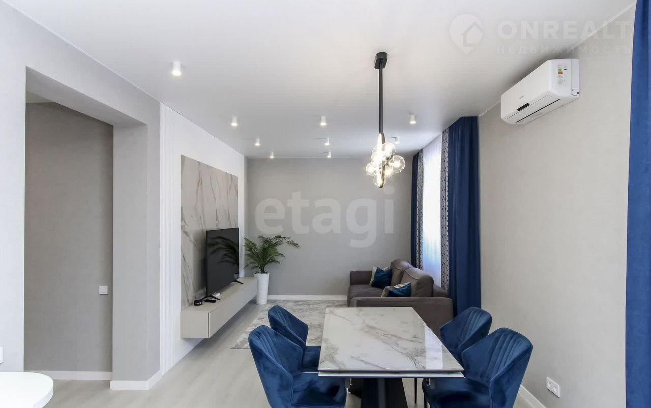 Санузел облицован плитами от "Кеrаmа Маrаzzi", душевая кабина выполнена по индивидуальным размерам. Стены оформлены виниловыми моющимися обоями, натяжные матовые потолки со стильными спотами и трековой системой освещения. Встроенная кухня и шкафы оснащены фурнитурой "Вlum". Вся мебель, встроенная техника и текстиль на окнах остаются новым владельцам.