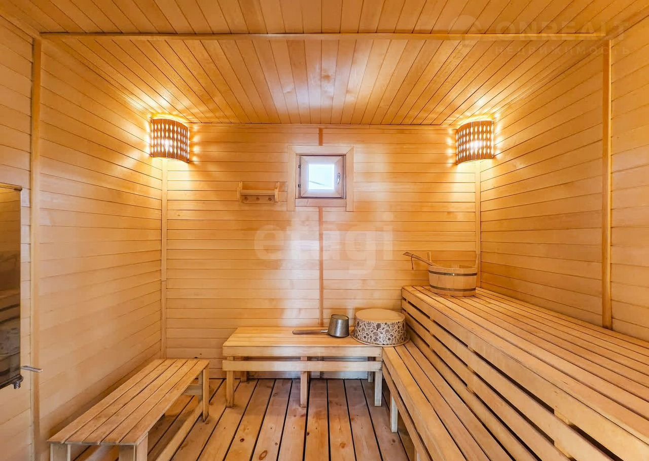 На ухоженном участке расположены баня, хозблок, беседка и мангальная зона. Участок ровный, с газоном, а во дворе — асфальт.