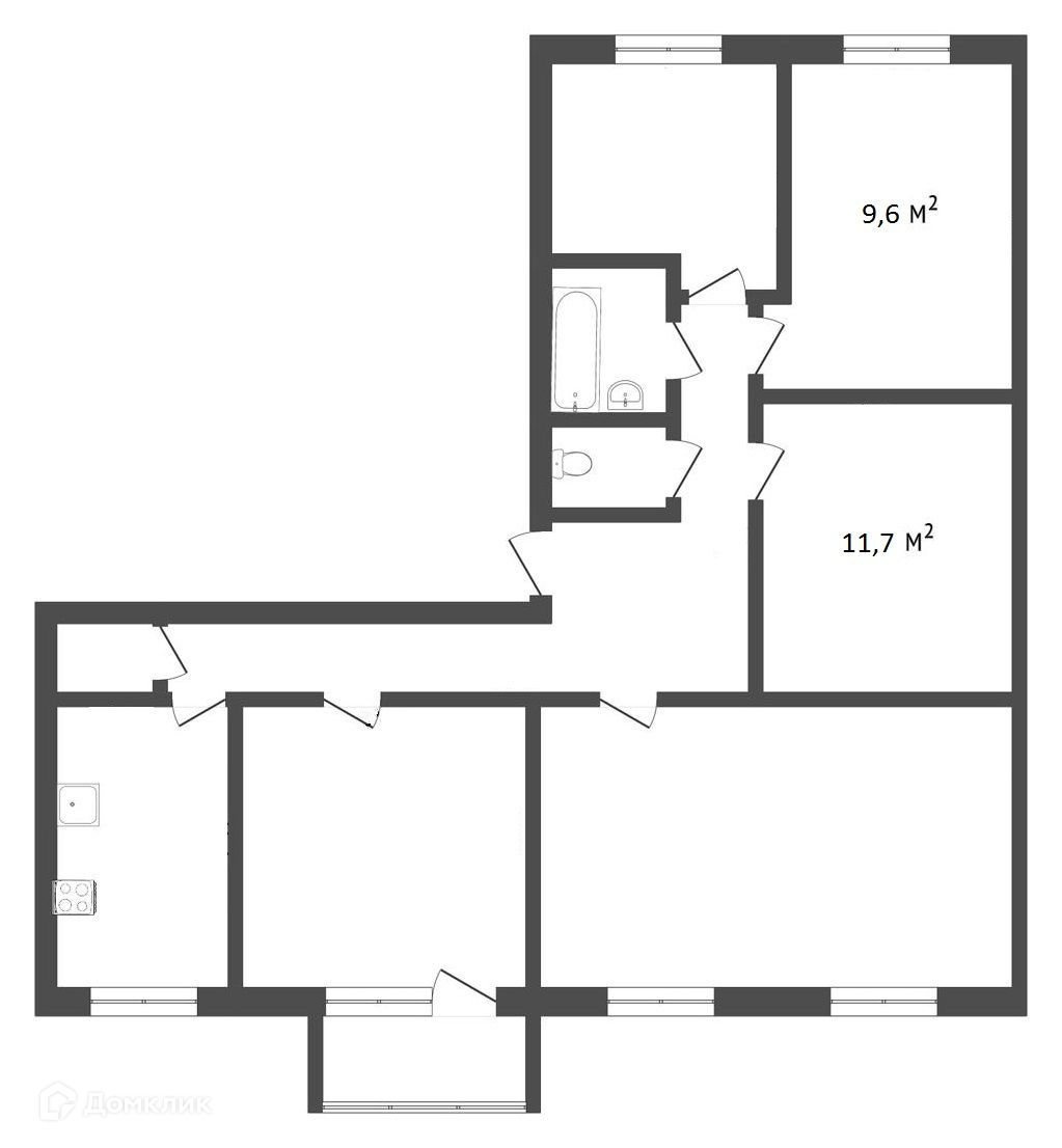 Площадь комнат – 11,7 кв м и 9,6 кв м. Высота потолков 2,5 м. В комнатах требуется косметический ремонт, на полу постелен линолеум, пластиковые окна, на стенах обои. Имеется общий чистый раздельный санузел и кухня. Квартира без балкона. Остается вся мебель и бытовая техника, что есть на фото.