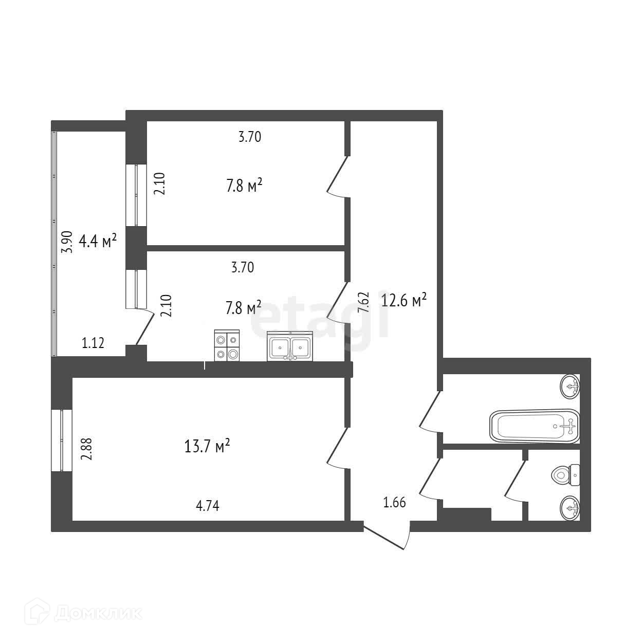 Планировка очень удобная, где кухня 8 кв. м и две изолированные комнаты и санузел тоже раздельный.
