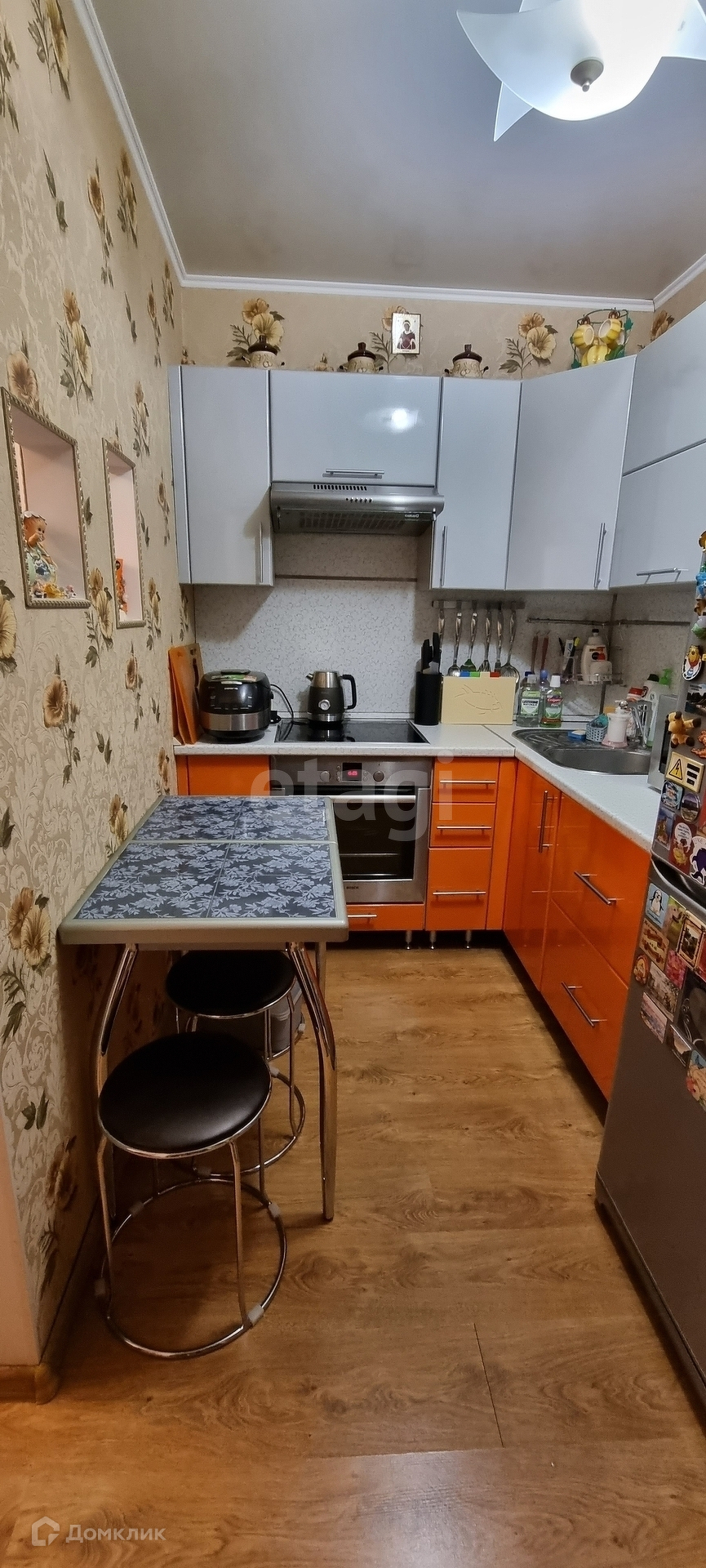 Натяжные потолки, пластиковые окна, на полу ламинат, установлена качественная входная дверь. В комнату заведена вода, своя кухня (кухонный гарнитур изготавливался на заказ), установлена раковина и стиральная машина.