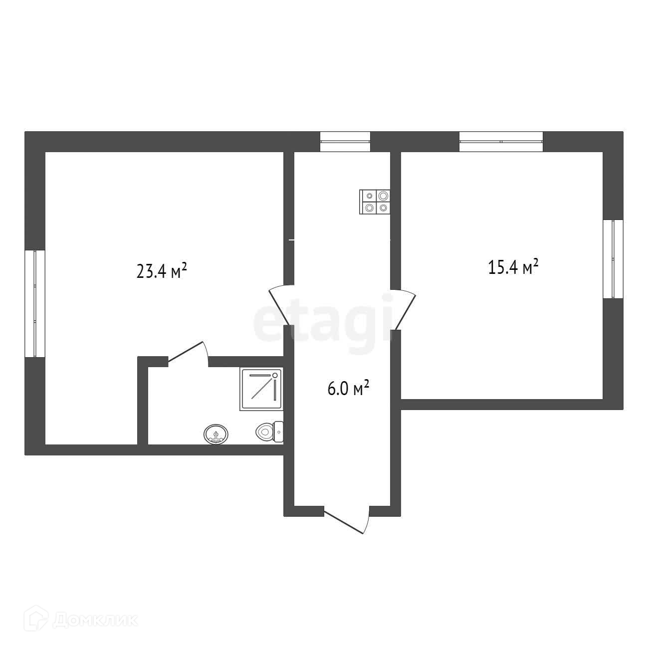 Общая площадь 44.8 м2