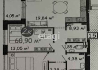Продается 2-комнатная квартира, 60.7 м2