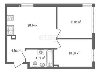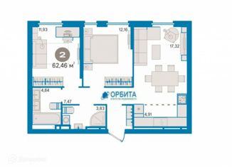 Двухкомнатная квартира на продажу, 58.71 м2, улица 50 лет Октября, 63Г