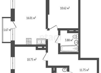 Двухкомнатная квартира на продажу, 54.2 м2, Харьковская улица, 74