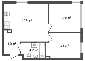 Двухкомнатная квартира на продажу, 36.4 м2, Харьковская улица, 74