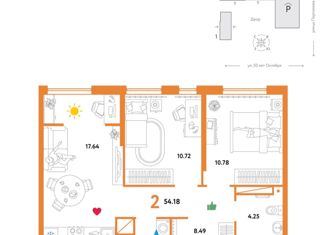 Продажа 2-ком. квартиры, 54.2 м2, Харьковская улица, 74