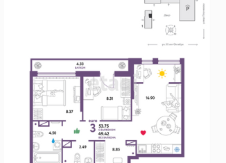 Продажа двухкомнатной квартиры, 49.8 м2, Харьковская улица, 74