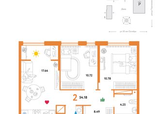 2-ком. квартира на продажу, 66 м2, улица 50 лет Октября, 63Г