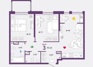 2-комнатная квартира на продажу, 54.2 м2, Харьковская улица, 74