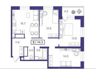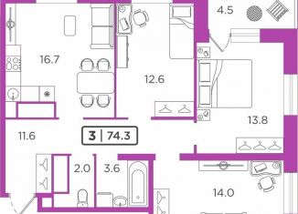 Продажа 3-ком. квартиры, 74.3 м2, улица Мельникайте, 2к17