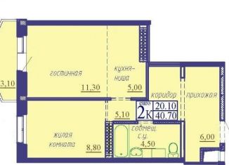 Общая площадь: 40.7 м2