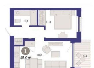 Продается 1-комнатная квартира, 42.1 м2