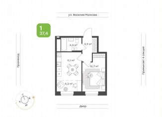 Продается однокомнатная квартира, 37.4 м2