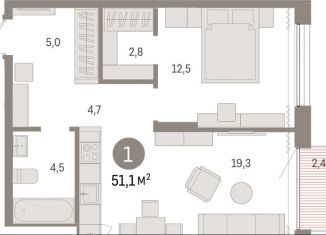 Продаю однокомнатную квартиру, 51.1 м2