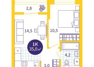Продажа однокомнатной квартиры, 38.5 м2