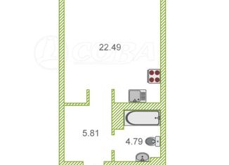 Квартира на продажу студия, 33 м2, Краснооктябрьская улица, 6