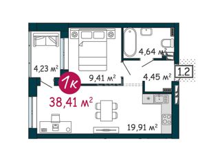 Продается однокомнатная квартира, 38.41 м2