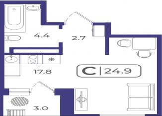 Квартира на продажу студия, 24.6 м2