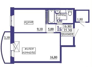 Продажа однокомнатной квартиры, 35.3 м2