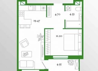 Однокомнатная квартира на продажу, 40.4 м2