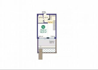 Продам 1-комнатную квартиру, 59.8 м2, Краснооктябрьская улица, 8