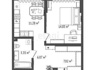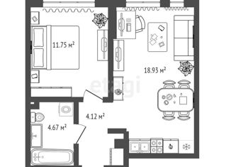 Продажа 1-комнатной квартиры, 40.6 м2, Алматинская улица, 4