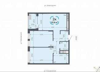 Продажа двухкомнатной квартиры, 57.8 м2