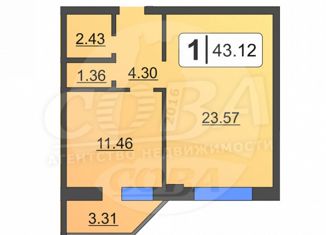 Продается 1-комнатная квартира, 42.1 м2, Амурская улица, 4