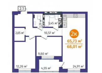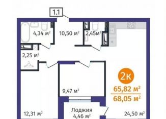Продаю двухкомнатную квартиру, 65.7 м2, Краснооктябрьская улица, 8