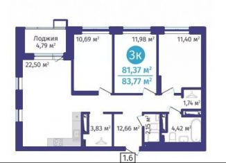 Продаю трехкомнатную квартиру, 81.4 м2, Краснооктябрьская улица, 8