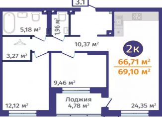 Продам двухкомнатную квартиру, 66.7 м2, Краснооктябрьская улица, 8
