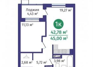 • 1-комнатная квартира на продажу, 44 м2, Тюмень, Краснооктябрьская улица, 12, ЖК ДОК
