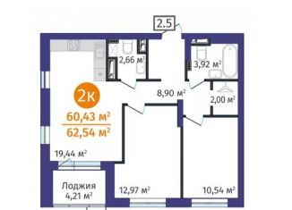 Продажа 2-ком. квартиры, 60.4 м2, Краснооктябрьская улица, 8