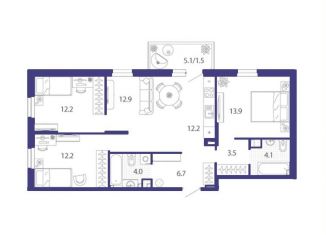 Продаю двухкомнатную квартиру, 51.6 м2, улица Парада Победы, 13