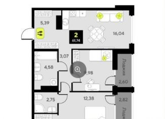 Продажа 2-ком. квартиры, 61.6 м2