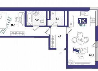 Продам однокомнатную квартиру, 52.4 м2, улица Евгения Войнова, 8