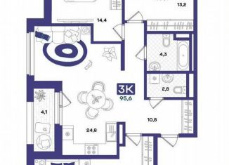 3-ком. квартира на продажу, 95.6 м2, улица Евгения Войнова, 8
