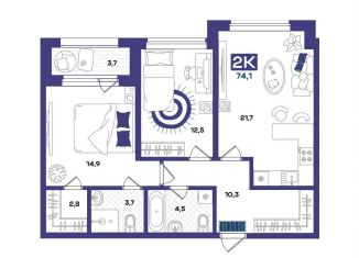 Общая площадь: 74.1 м2