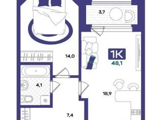 Продам однокомнатную квартиру, 48.1 м2, улица Евгения Войнова, 8